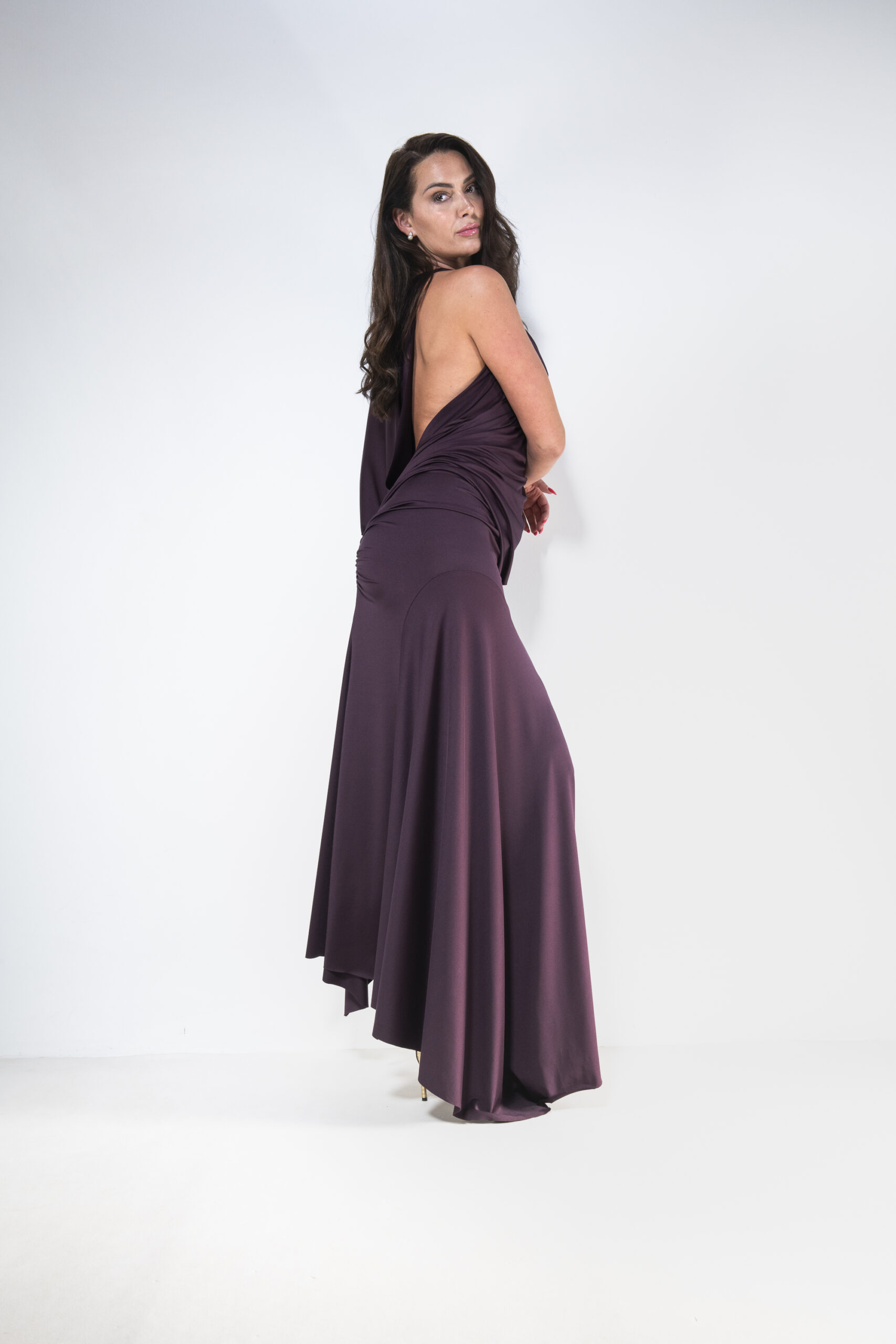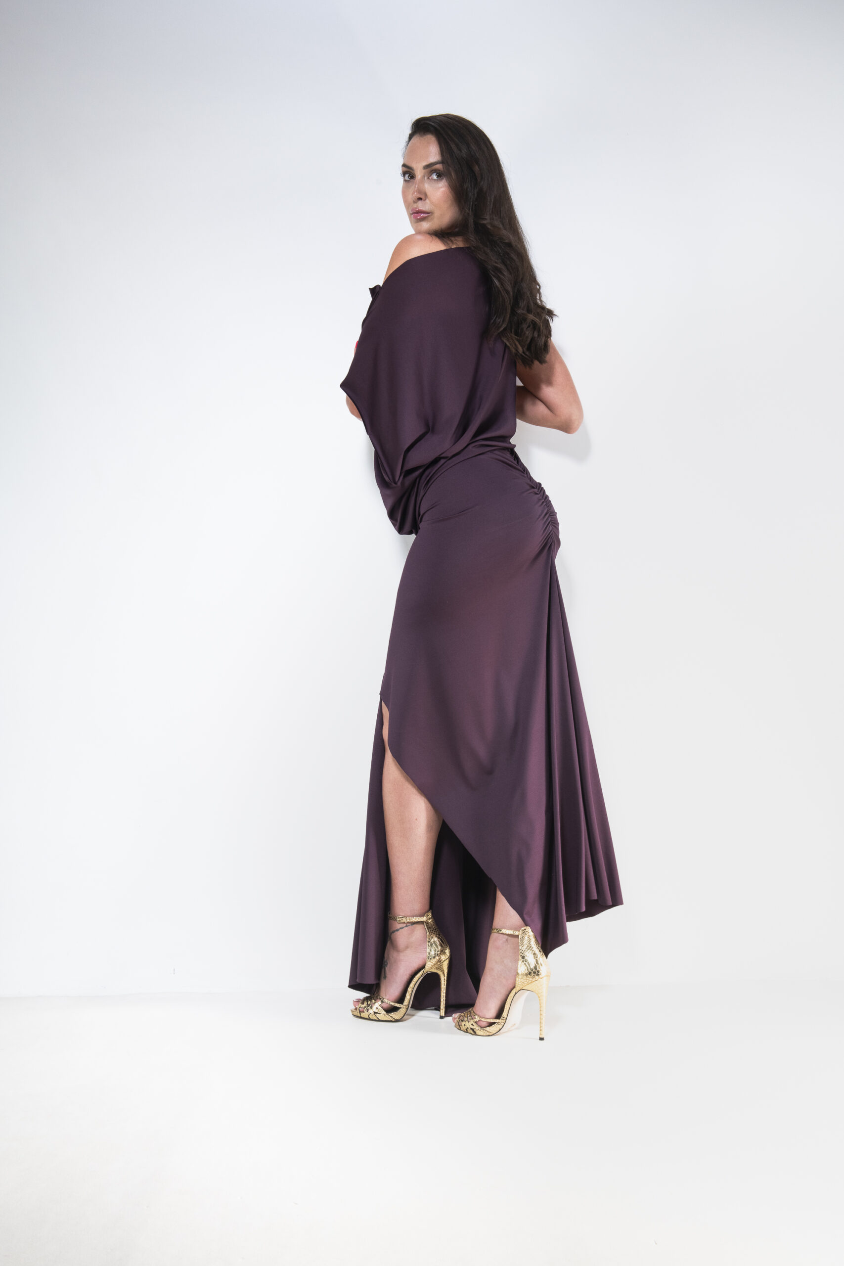 Kevan Jon’s Daphne Asym Drape Dress is designed with a beautifully draped neckline that features a one sleeve detail, along with a side split up the dress to add movement that creates a gorgeous silhouette.