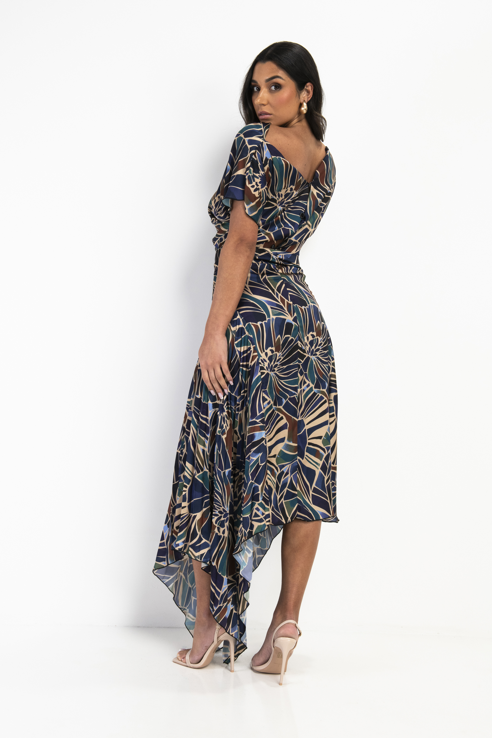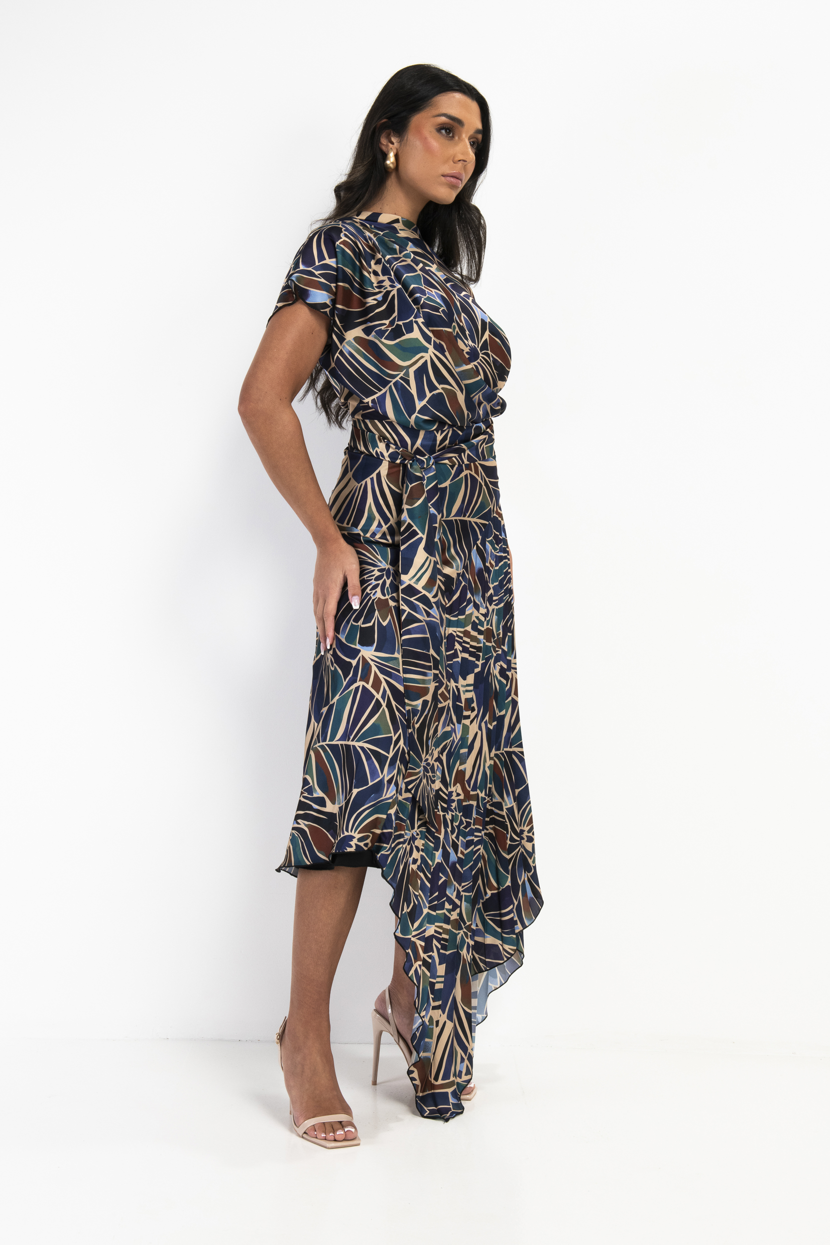 Kevan Jon Mila Pleat Knee Dress has a soft asymmetric neckline that is extremely flattering, the mid maxi length skirt falls to an asymmetric hemline with a pleated insert to the left side giving added interest to this already stunning dress. The addition of a removable sash allows you to accentuate the waist line.